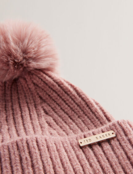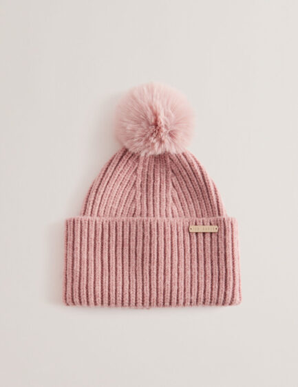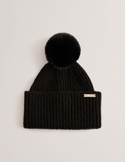 EMILYYA – Gorro con pompón de punto acanalado