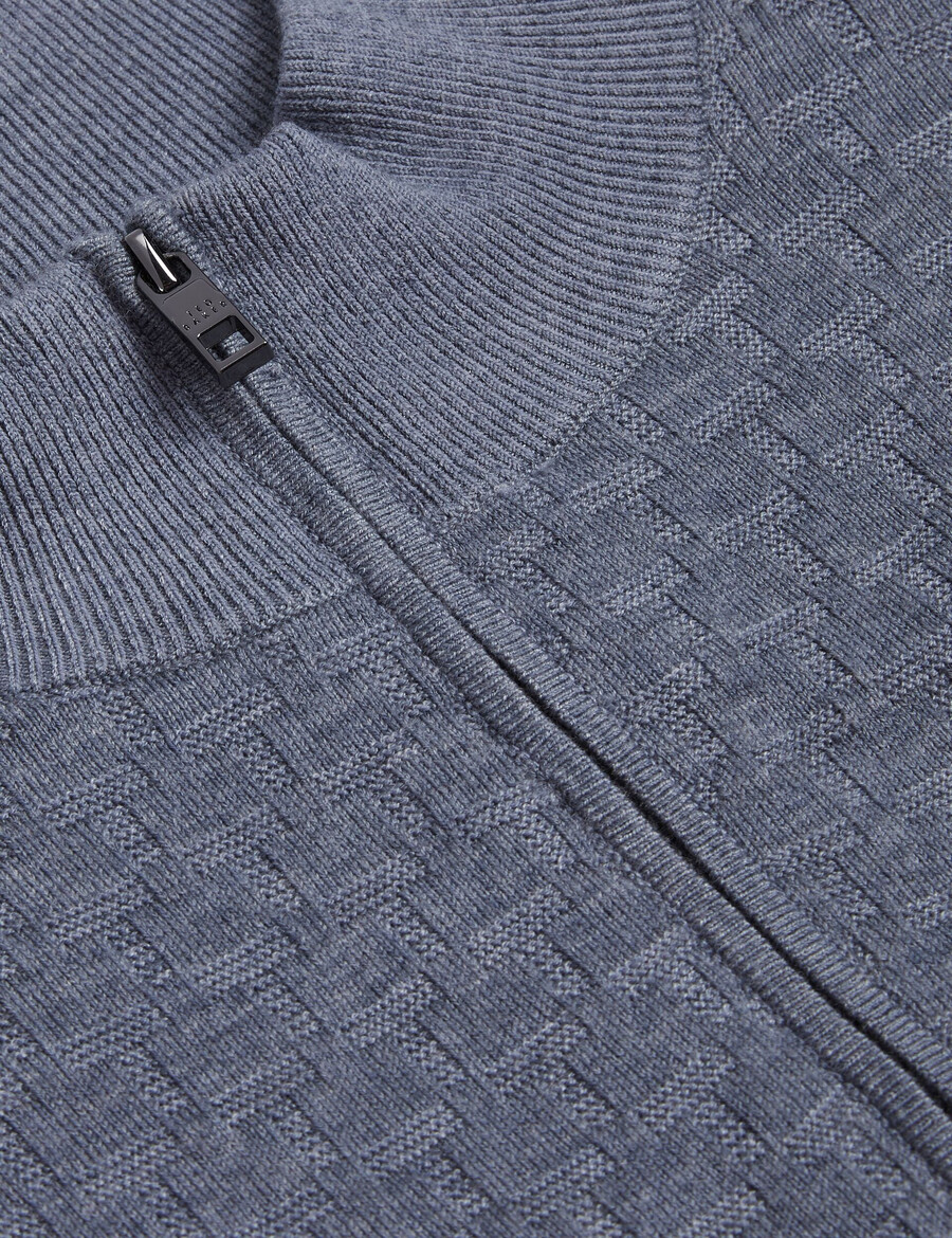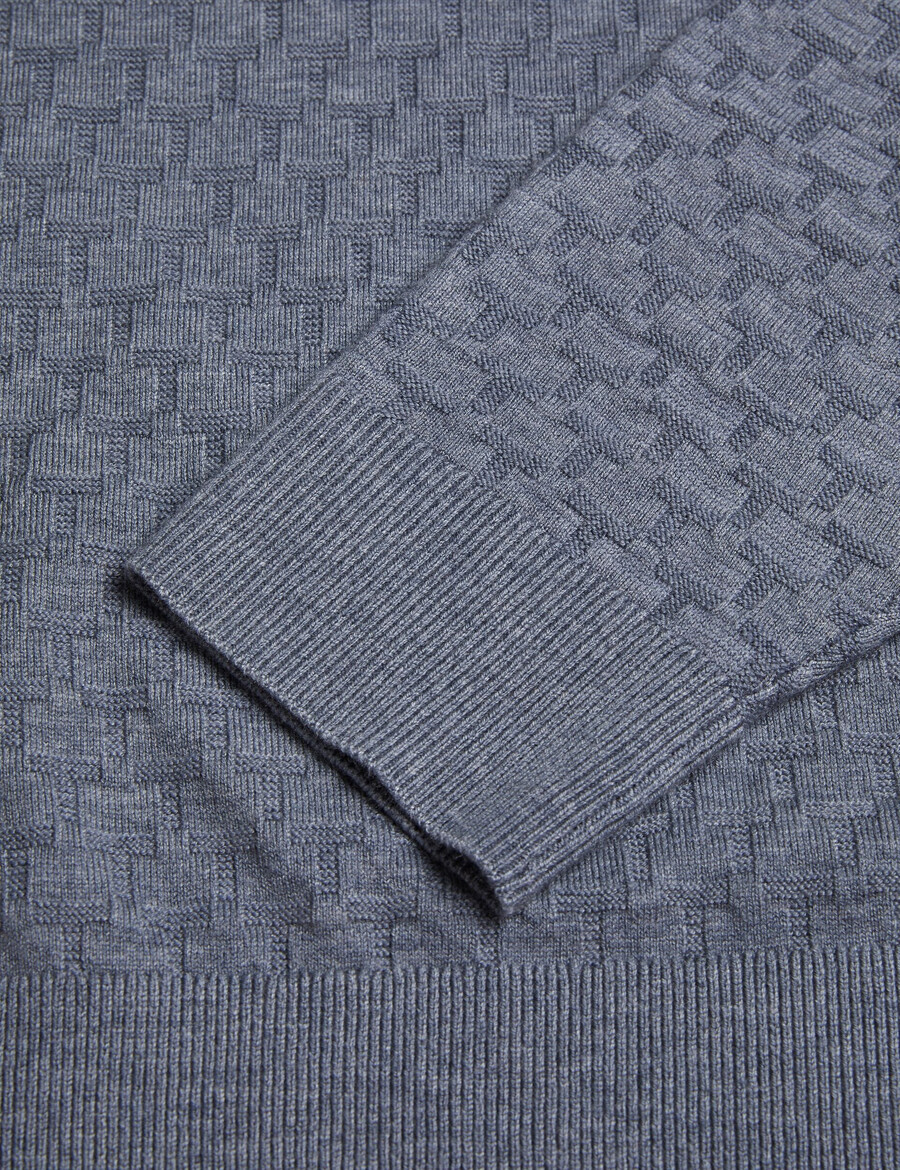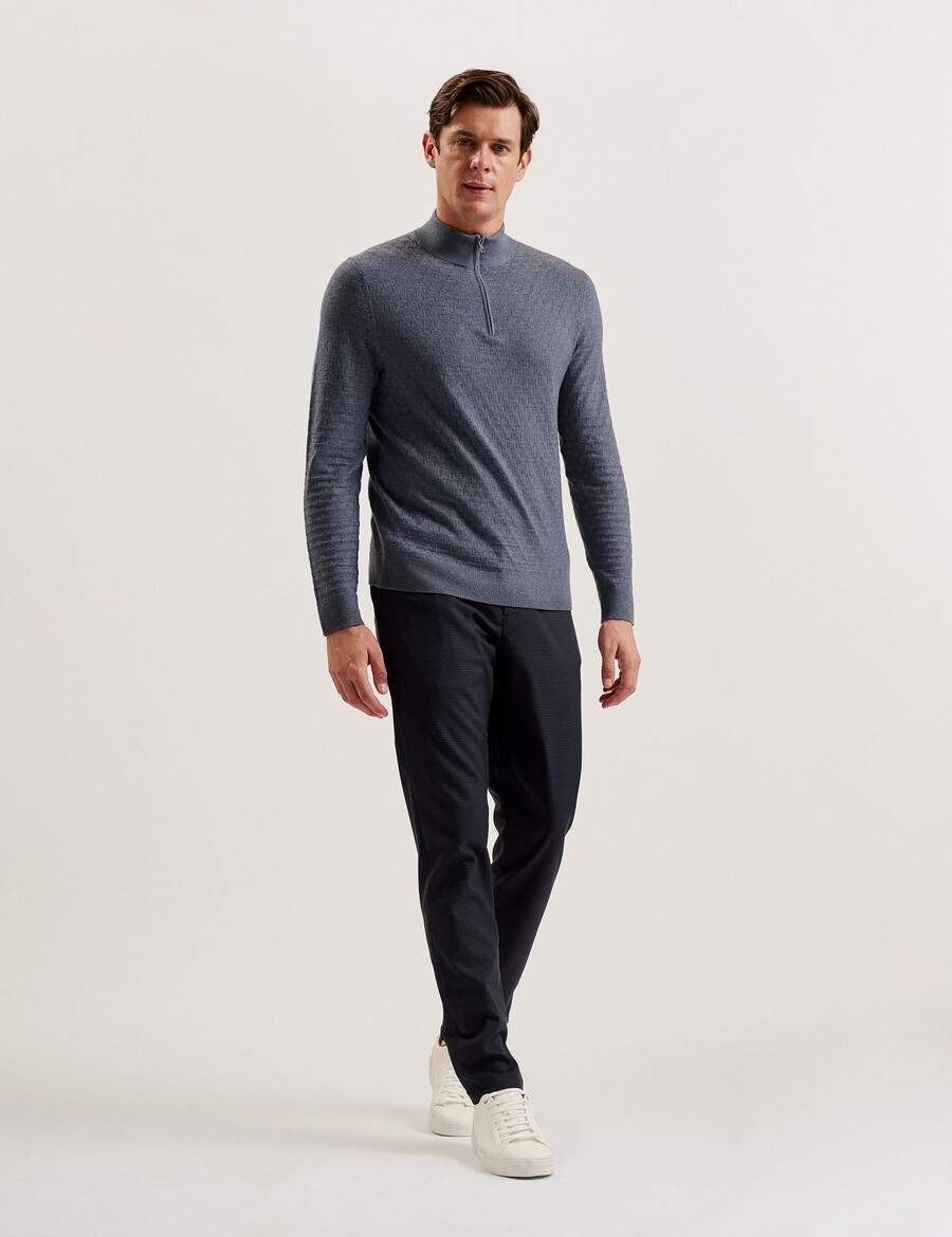 Jersey de manga larga Mezcla de lana Tejido de punto texturizado Cierre de media cremallera Cuello alto Acabados acanalados Lewis mide 1,88 m y lleva Mid Blue en una talla 3 de Ted 32 % poliéster, 31 % poliamida, 28 % acrílico, 7 % lana, 2 % elastano Lavar a mano, se puede limpiar en seco