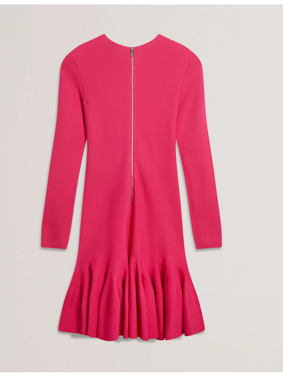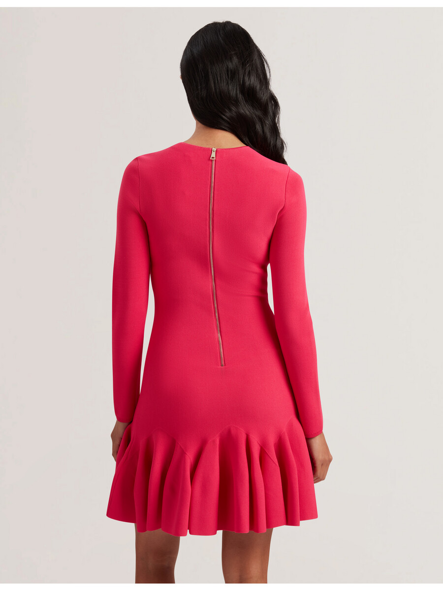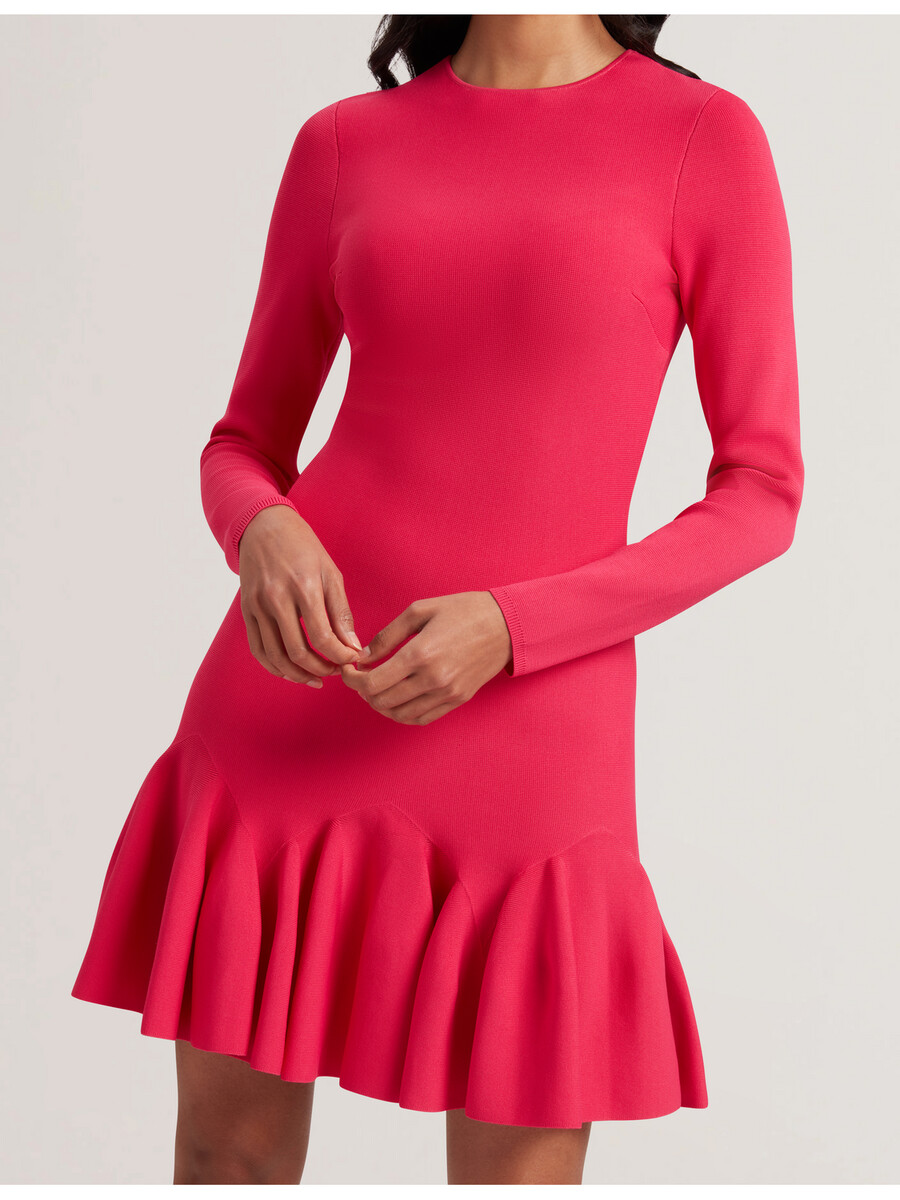 Vestido mini Dobladillo con volantes Tejido de punto elástico Ajuste ajustado Mangas largas Cuello redondo Cierre de cremallera expuesta May mide 1,74 m y usa Fuchsia en una talla 1 de Ted 52 % viscosa 45 % poliamida 3 % elastano Lavar a mano, planchar 1 punto, limpieza en seco P