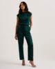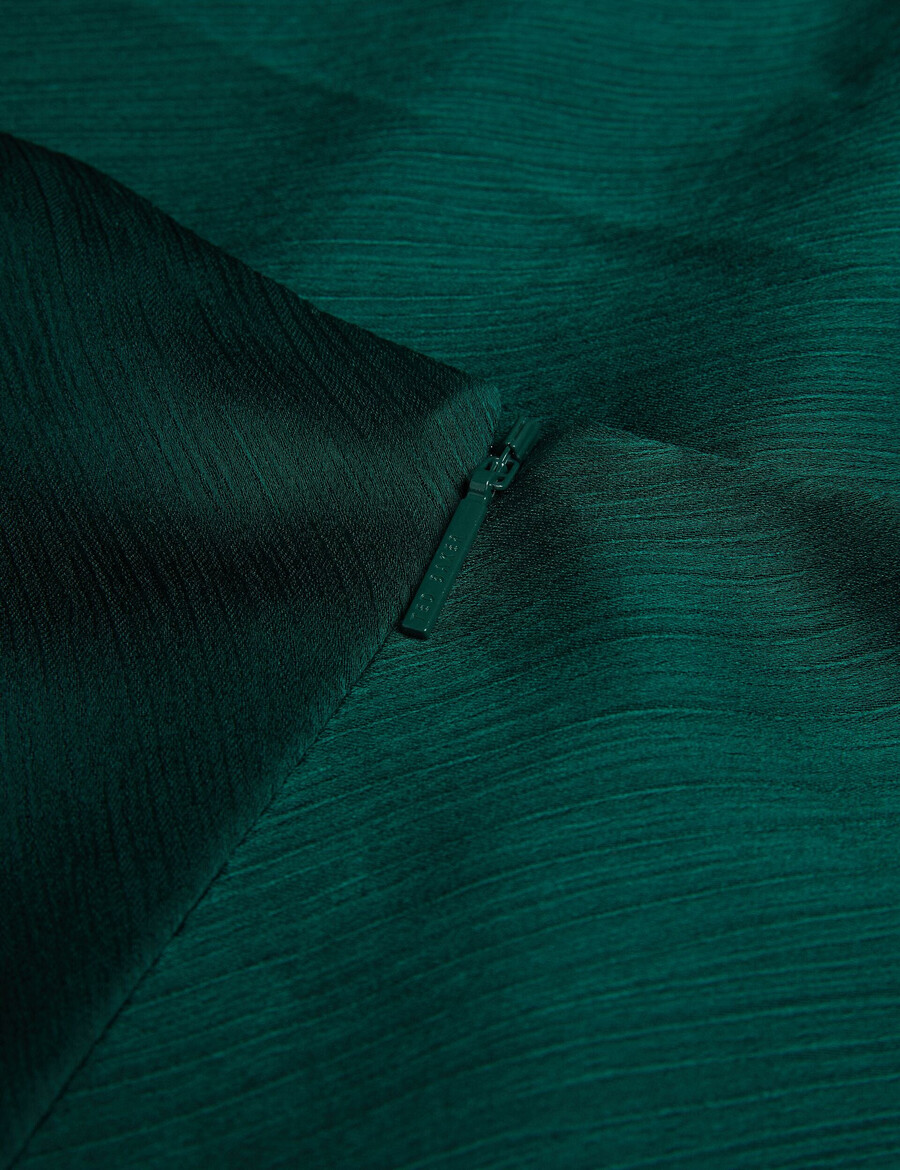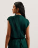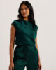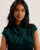 Blusa de satén Escote alto drapeado Detalle de hombros fruncidos Textura arrugada Mangas cortas Corte recto Cierre de cremallera oculta May mide 1,74 m y usa verde oscuro en una talla 1 de Ted Exterior: 100 % poliéster; Forro: 100 % poliéster Lavar a mano, planchar a temperatura baja, se puede limpiar en seco
