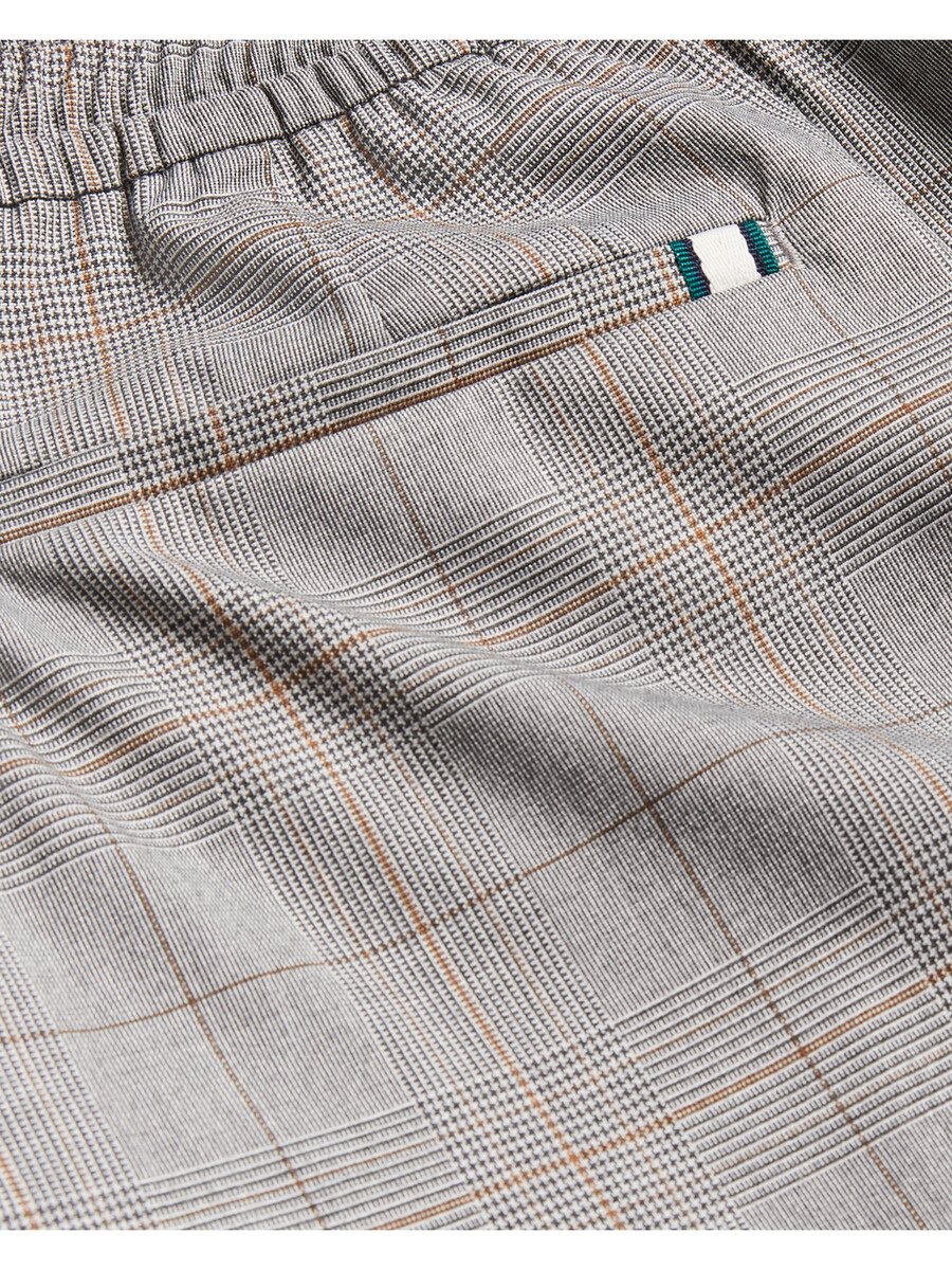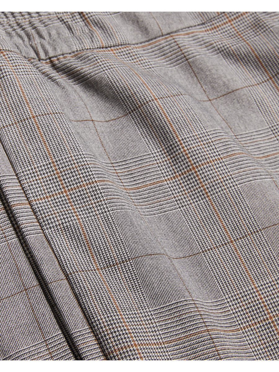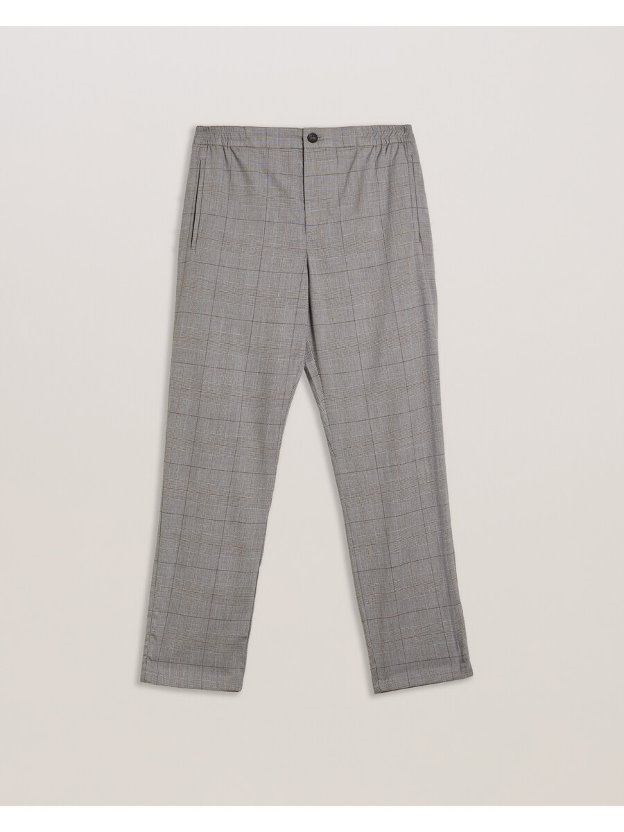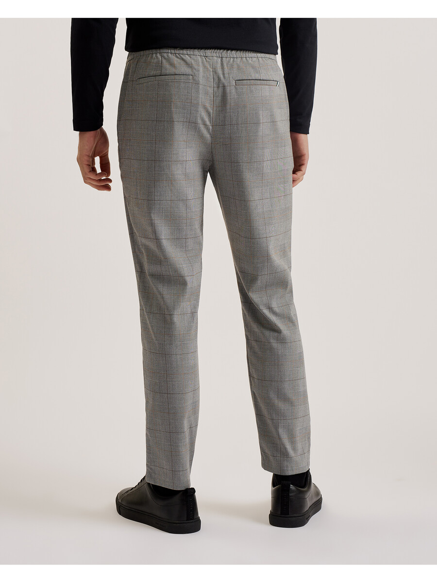 Pantalones a medida Estampado de cuadros Príncipe de Gales Corte ajustado Cintura elástica Bolsillos laterales y traseros ribeteados Cierre de botón y cremallera Lewis mide 1,88 m y usa una talla 32 Exterior: 64 % poliéster, 34 % viscosa, 2 % elastano; bolsillo: 100 % algodón