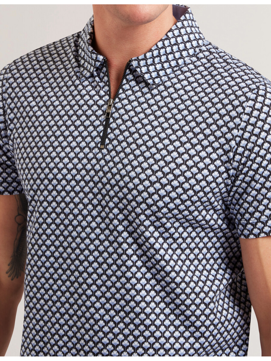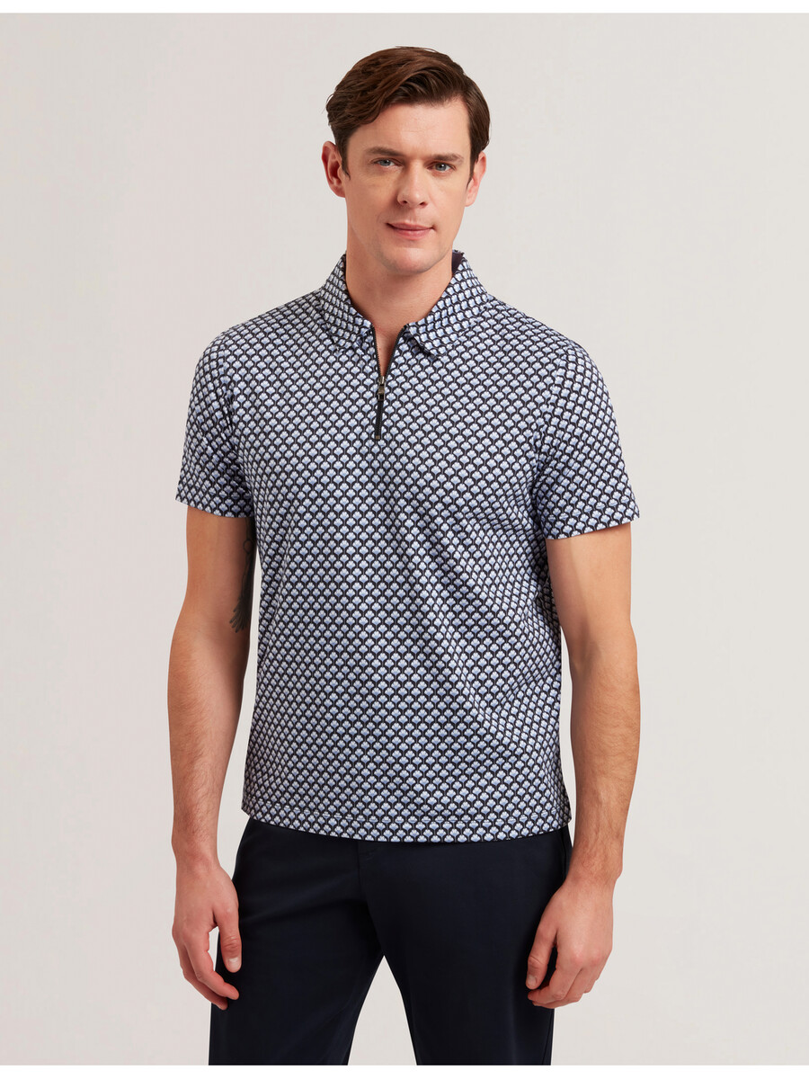 OUNSLO – Polo estampado con cremallera y corte regular de manga corta