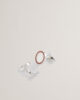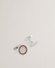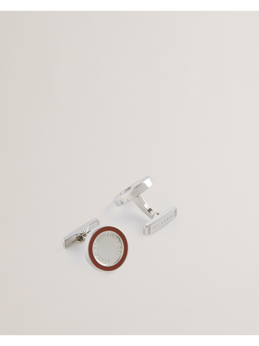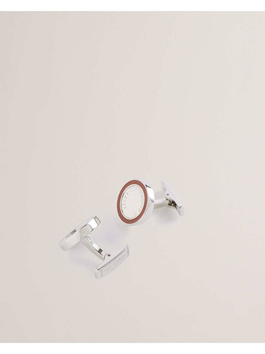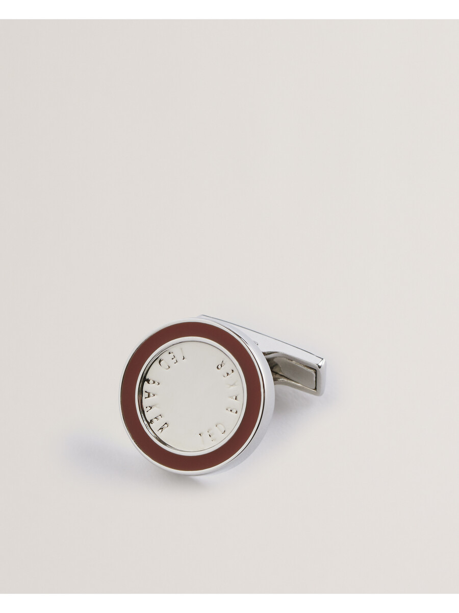Gemelos redondos Borde de halo de color en contraste Centro del logotipo grabado Baño de plata brillante Cierre con bisagras 81 % latón, 10 % aleación de zinc, 5 % epoxi, 3 % acero inoxidable, 1 % baño de color plata. No lavar, no planchar, no limpiar en seco