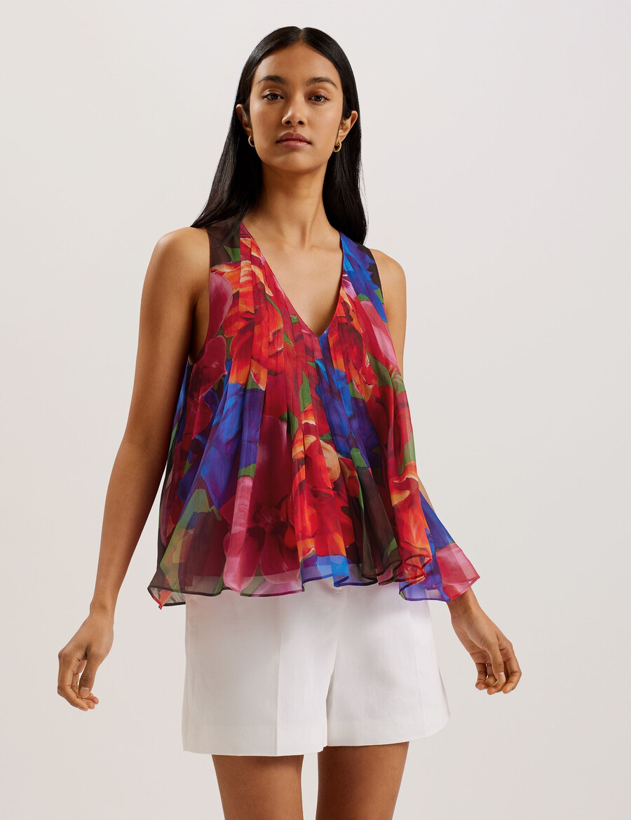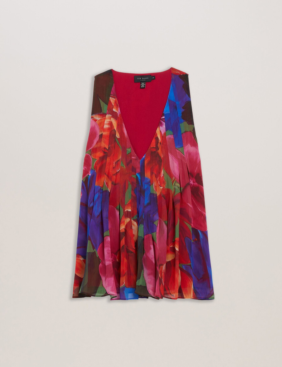 Sin mangas Escote en V Ajuste fluido Dobladillo recto